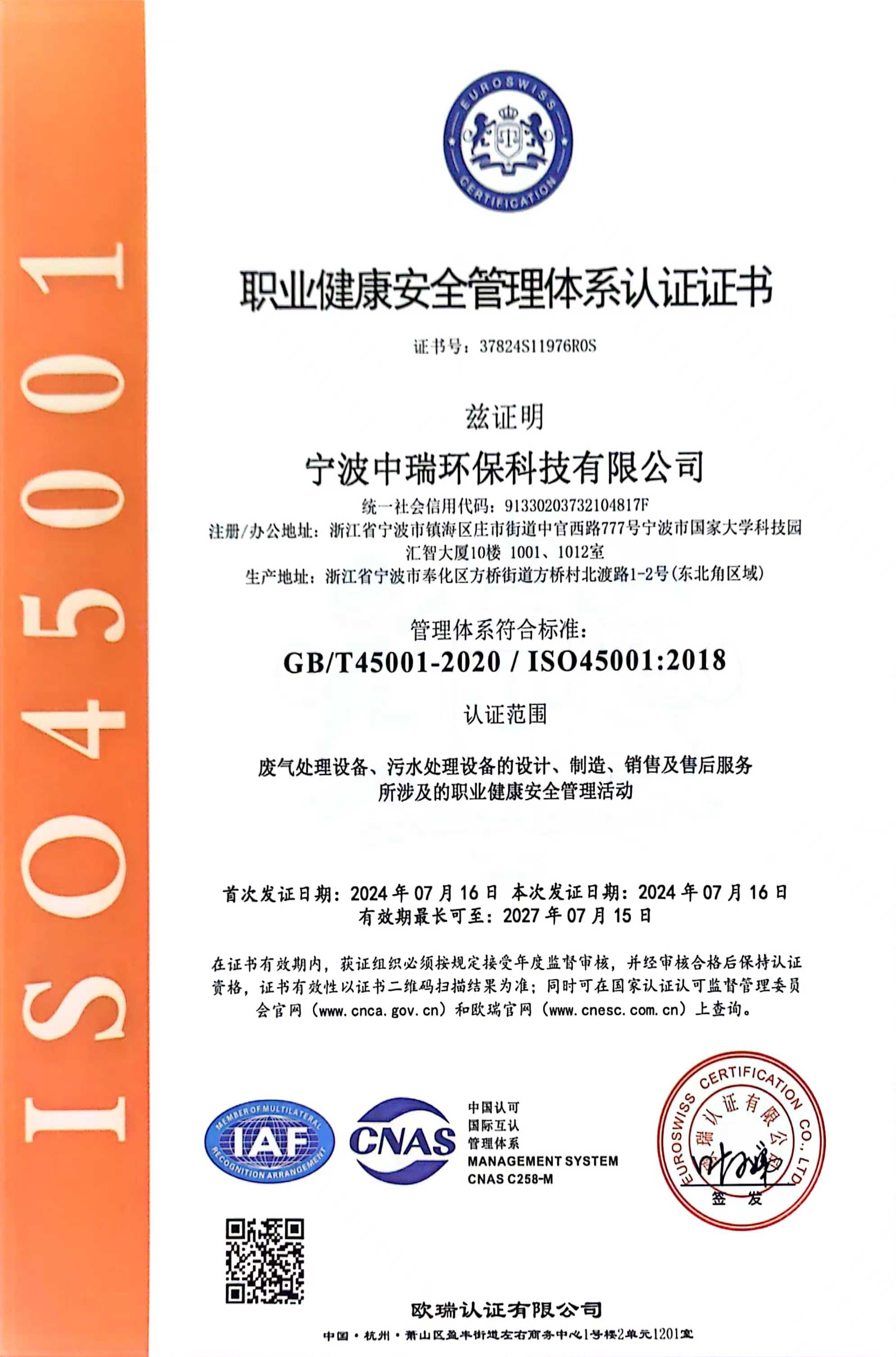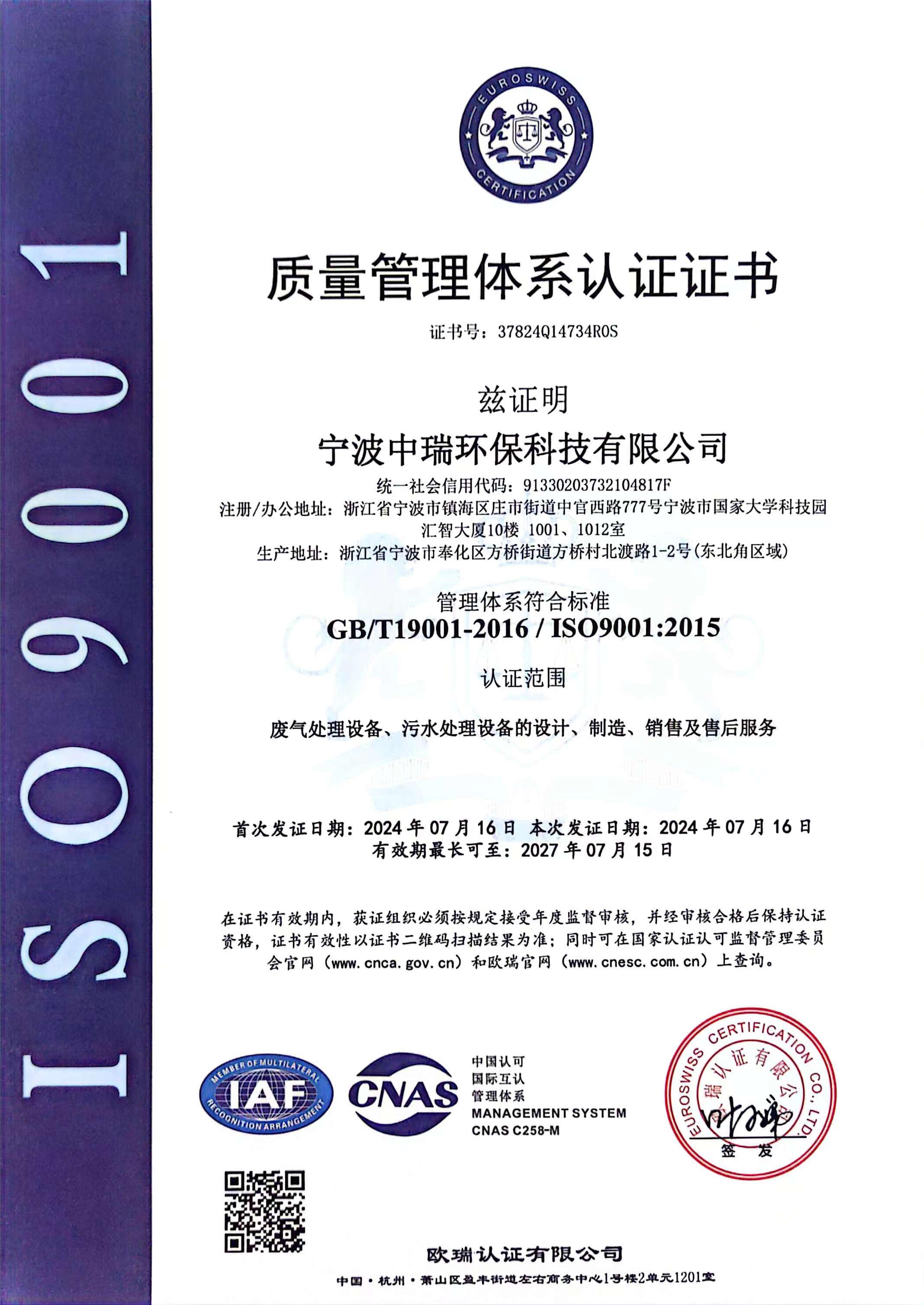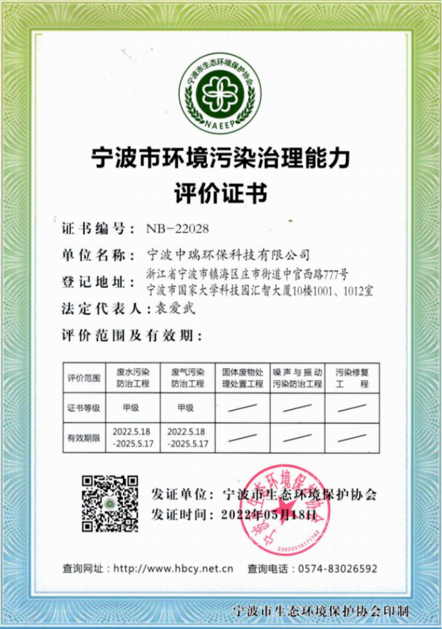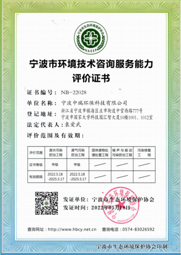 經(jīng)過(guò)多年努力,曾入選環(huán)境保護(hù)部“國(guó)家先進(jìn)污染防治示范技術(shù)名錄”、“國(guó)家鼓勵(lì)發(fā)展的環(huán)境保護(hù)技術(shù)名錄”的技術(shù)依托單位。相關(guān)技術(shù)入選《浙江省環(huán)境保護(hù)先進(jìn)適用技術(shù)匯編》,公司技術(shù)實(shí)力雄厚,擁有多項(xiàng)國(guó)家技術(shù)專(zhuān)利,榮獲寧波市科學(xué)技術(shù)成果。并通過(guò)了ISO9001:2015質(zhì)量管理體系、ISO14001:2015環(huán)境管理體系及ISO45001:2018職業(yè)健康安全管理體系認(rèn)證。